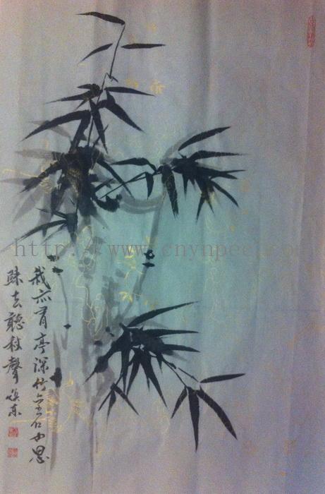 云南普洱茶信息网推荐·茶人书画家·耕田之子·丁焕东先生作品·竹图·中堂1