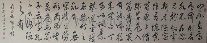 云南普洱茶信息网推荐·茶人书画家·耕田之子·丁焕东先生作品·《桃花庵歌》·横幅·