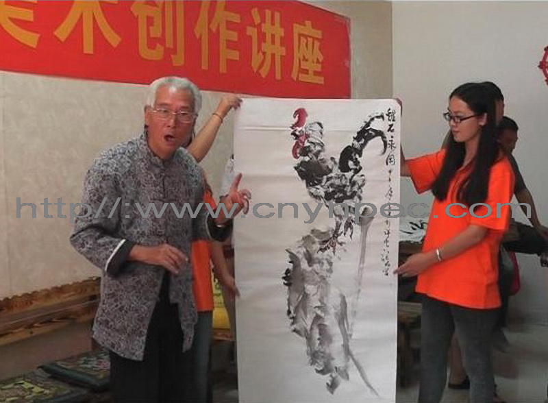 中国著名大写意画家,云南茶人书画家张晶先生,1937年9月出生于云南省大理市弥渡县弥城镇,张晶先生幼时由于家境特别贫寒,正所谓是上无片瓦,下无寸土,没有住房,祖孙三代就蜗居在废弃的碉堡内,父亲又是残疾人,基本散失了劳动能力,母亲也是体质比较柔弱,自7岁起就得为了家人的存活奔忙于生计,就连一双草鞋都穿不起的张晶先生的童年就跟着爷爷挎着竹篮走村串寨叫卖香烟、洋火、糖果、松瓜子等。空闲之余,少年张晶先生除了使用家乡特有的一种白石(即:当地的一种彩色画石)作为画笔在地上或是石板上绘画家禽动物、人物房宅、田园庄家、树木山水等,甚至在乡村路上、山路上、集市上等松软土地上,少年张晶先生总是随手捡起一根树枝或是竹棍就在地上“涂鸦”。可却经常会遇到村寨里的鸡,就会乘机来啄食他所走村叫卖的松瓜子。由于鸡的经常骚扰和对鸡接触多了,久而久之却就对鸡产生了浓厚兴趣,张晶先生干脆就拿鸡当作素材来画画,并把鸡的各种运动形态而且特别是雄鸡的各种姿势神态,揣摩得烂熟于心,终至越画越精。中国大写意画家张晶先生自小的时侯就在特别勤奋的练习绘画,且经常帮同学小伴画画,帮村里画宣传栏,后来又经常帮邻里乡亲在家具木柜上绘画,逐渐画技娴熟后就经常绘一些生动的中堂、条幅画卖钱谋生,那时侯的少年张晶先生还不知道绘画还分油画、国画、水彩画等等此类林林种种, 当时的张晶先生画画时所用的绘画颜料有广告色料、水彩色料、油画色料,还有唱戏往脸化装用的油色料;不管是画什么图案内容,也不管是用什么原料绘画,那时候的当地人也就是只喜欢幼时张晶先生的画,不管当时当地的经济环境条件是怎么样,但那时候少年张晶先生的画也已经是能换钱了……,虽然一幅画的价格仅为当时的两三元钱、四五元钱等,而且最高的还能卖到十元钱一幅,但按照当时的生活条件是已经可以养家活口了。