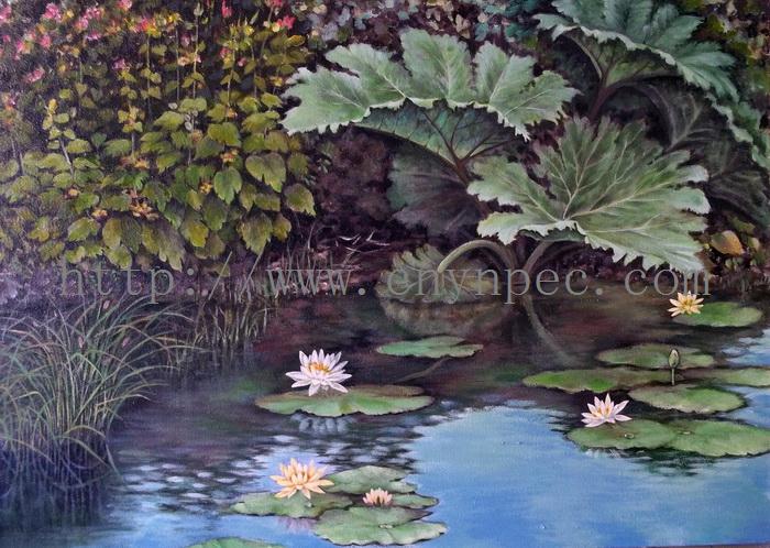 云南普洱茶信息网推荐·云南茶人书画家·欧阳菲女士作品·池塘边