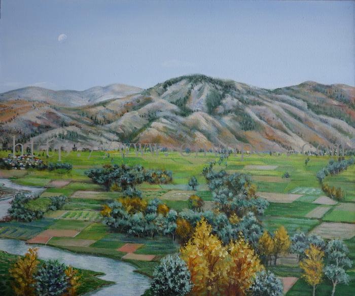 云南普洱茶信息网推荐·云南茶人书画家·欧阳菲女士作品·田园山色
